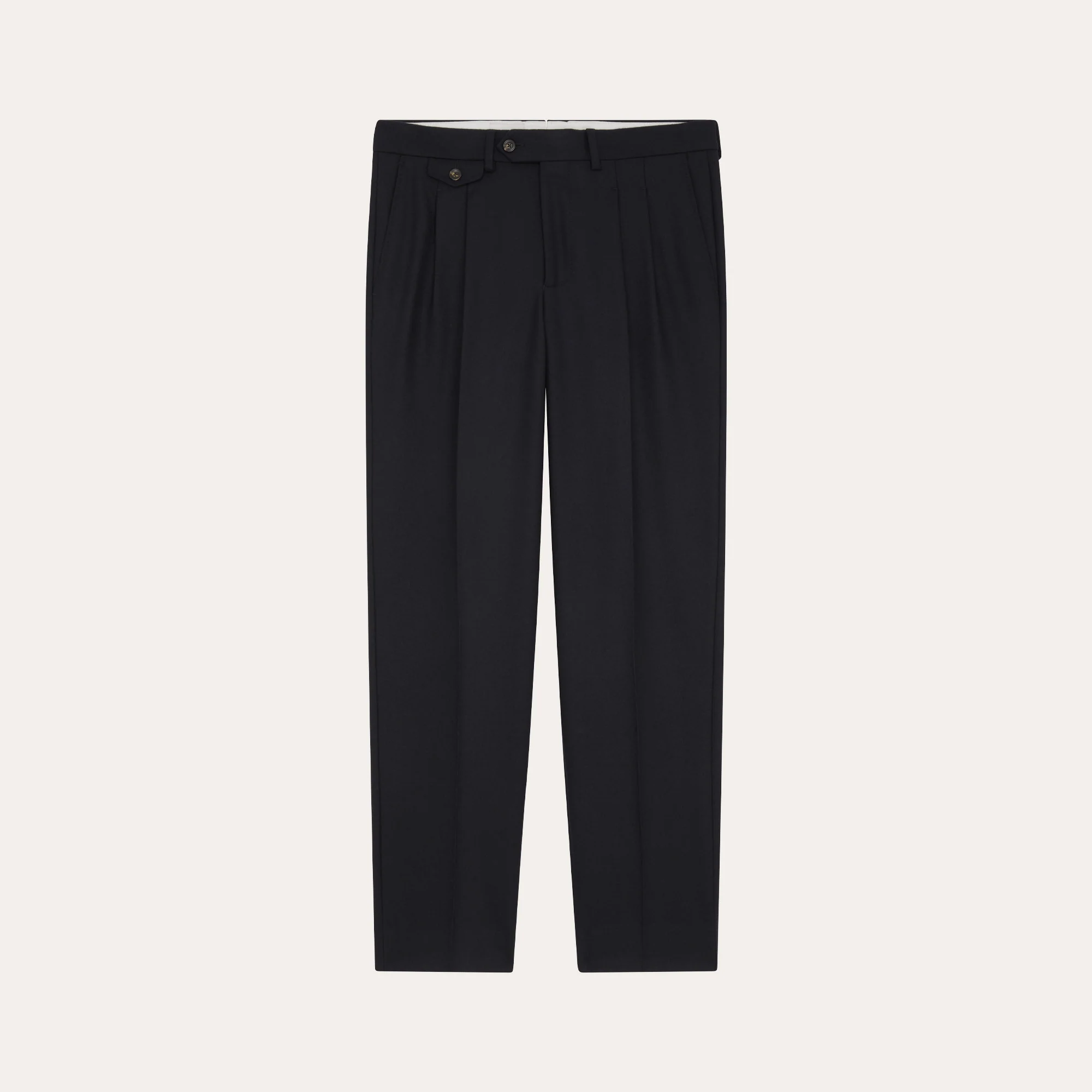 Confectionné en flanelle de laine marine signée Marzotto, ce pantalon incarne l’élégance intemporelle de la saison. Alliant résistance et chaleur, il offre un confort et une douceur remarquables. Sa coupe droite sublime la silhouette avec un tombé impeccable. Véritable pièce maîtresse de la collection, il reflète un raffinement incontestable.
