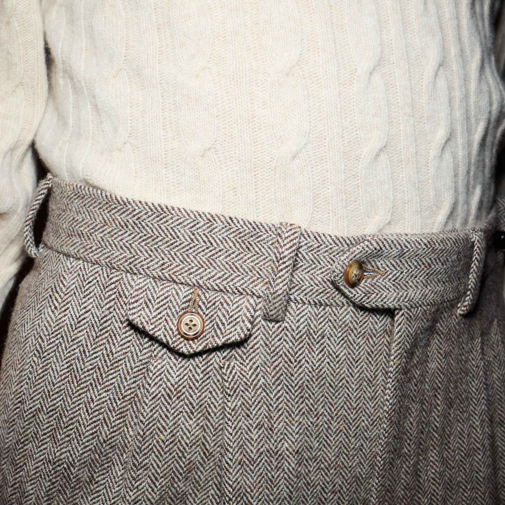 Ce pantalon à l’élégance britannique est confectionné dans une laine épaisse qui lui donne un tombé unique. Entièrement doublé et avec une coupe droite, il est d’un grand confort et vous tiendra au chaud cet hiver. Avec son superbe motif chevrons écru et marron, il donnera du relief à vos tenues.