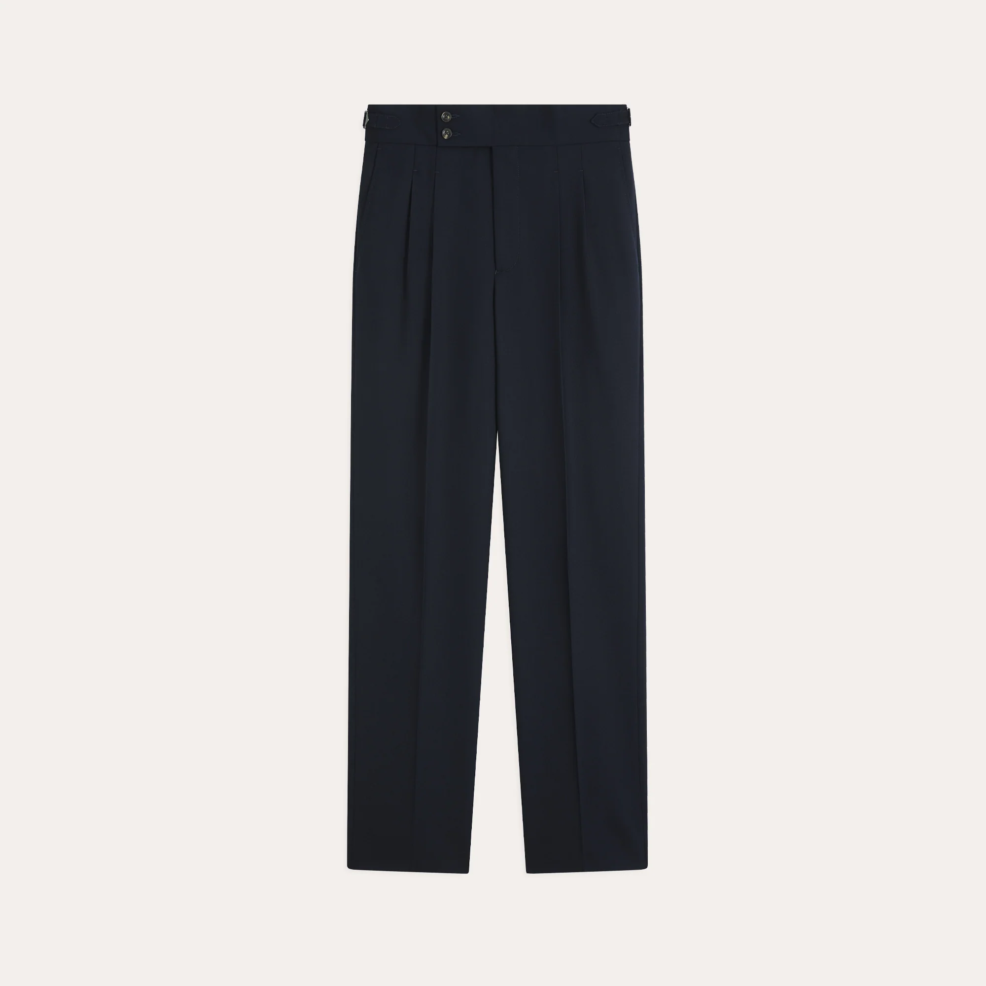 Inspiré du gurkha, ce pantalon est une création à l’esthétique sartoriale, il est confectionné dans une belle laine italienne triple retors de chez Marzotto. Avec ses ajusteurs latéraux et sa taille légèrement plus haute, il ravira les amateurs d’élégance. Avec son bleu marine, il est facile à associer.