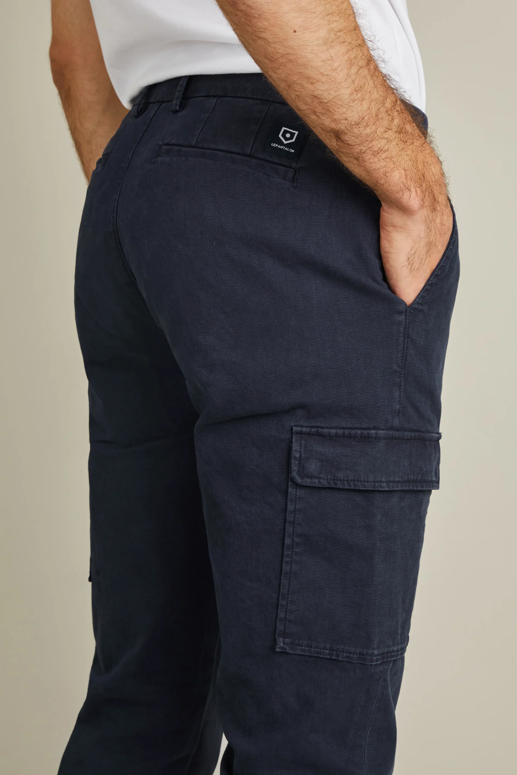Né du milieu militaire, le pantalon Cargo, était l’allié des parachutistes grâce à ses poches fonctionnelles. Il s’est imposé comme une icône du workwear pour sa résistance et sa praticité. Chez LePantalon, on aime les pantalons de tous les jours, qui conviennent à diverses occasions, c’est pour cela que nous avons apporté des touches d’élégance à ce pantalon avec des poches plaquées (et non soufflées) au niveau des jambes mais aussi des poches passepoilées à l’arrière.