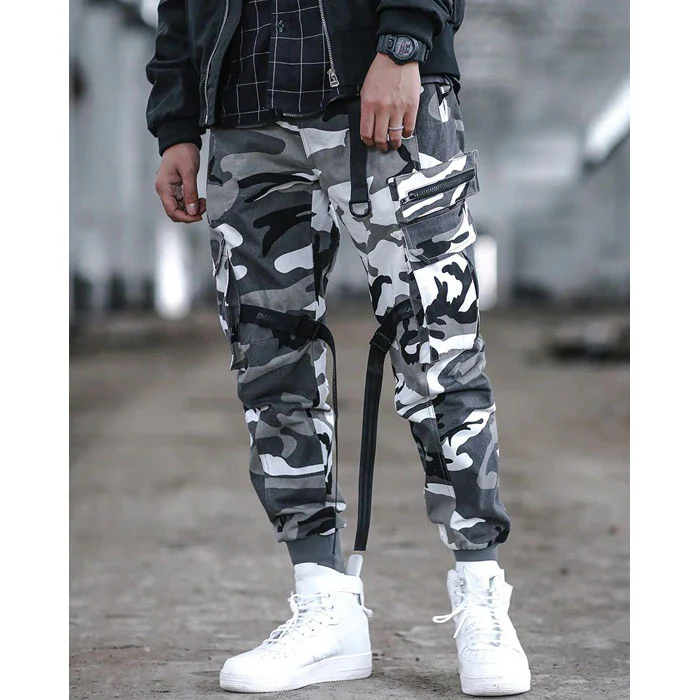 Pour agrémenter cette pièce, il ne fallait pas grand-chose : des poches sur les côtés, des bandes décoratives qui accentuent le côté urbain. Ce pantalon est aussi proposé en couleur noir ou camouflage, des teintes qui se portent avec absolument tout et avec une grande facilité.