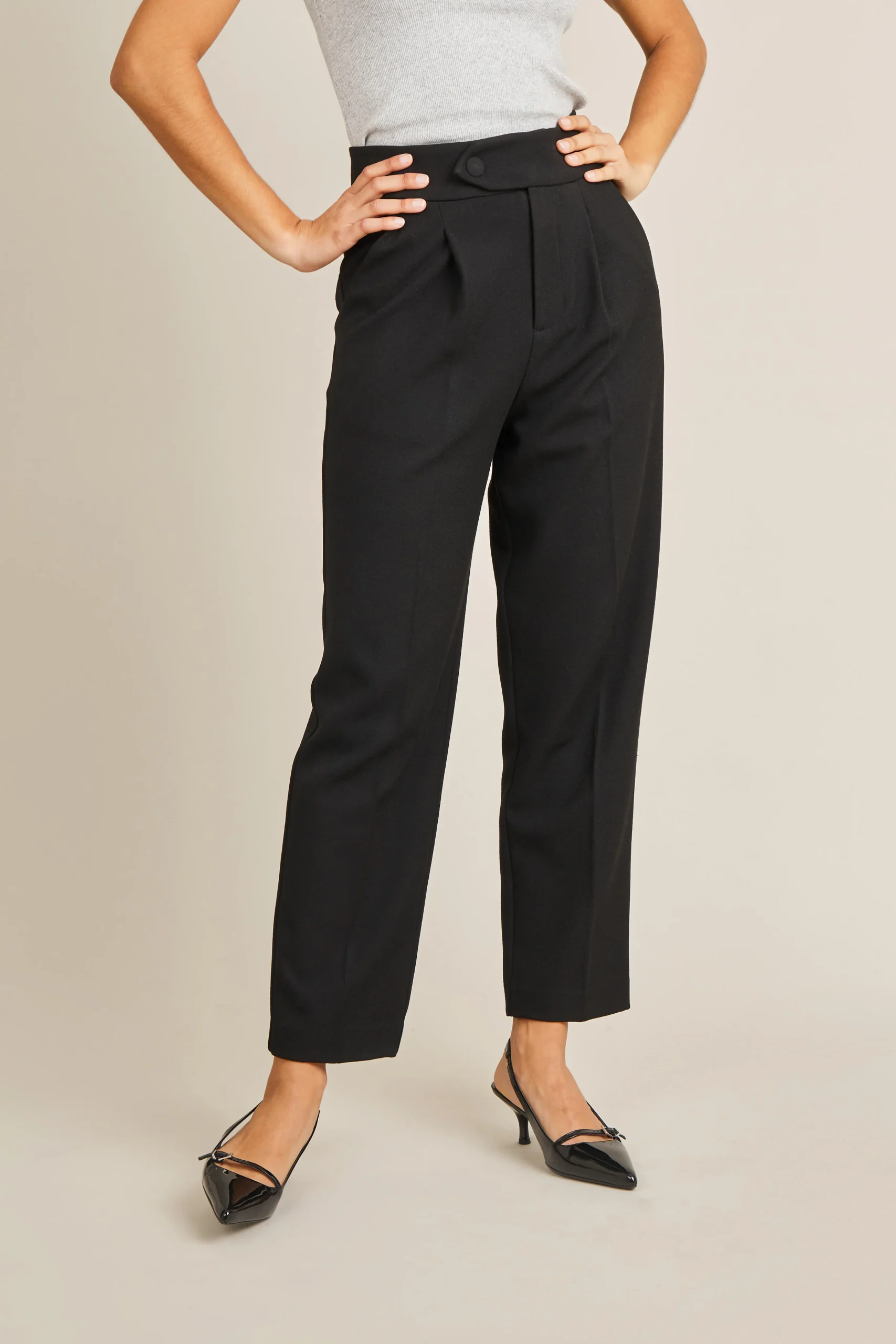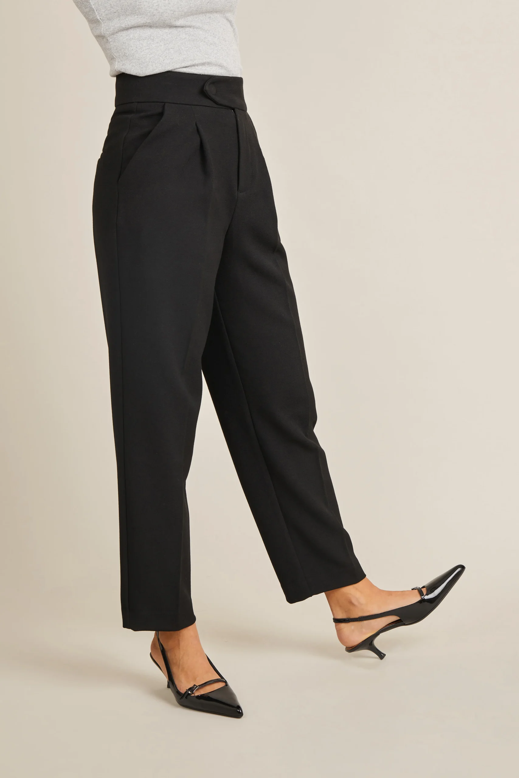 - Élégant, grâce à sa coupe cigarette, ses pinces et sa taille haute.