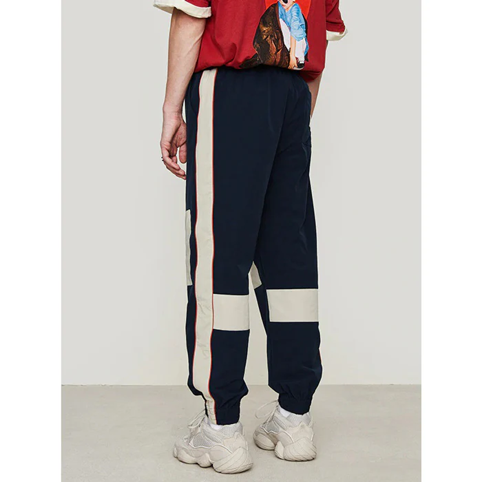 De toute sa longueur, il est agrémenté d’une bande blanche ainsi que des carrés sur le devant et derrière au niveau des jambes. Ces touches d’ornement renforcent le côté urbain du pantalon en en fait une tenue streetwear par excellence. Porté avec un t-shirt à message imprimé, il permet d’obtenir un style casual un peu rétro. Et pour casser l’image trop sportive, optes pour une veste en jean, toujours sans fausse note.