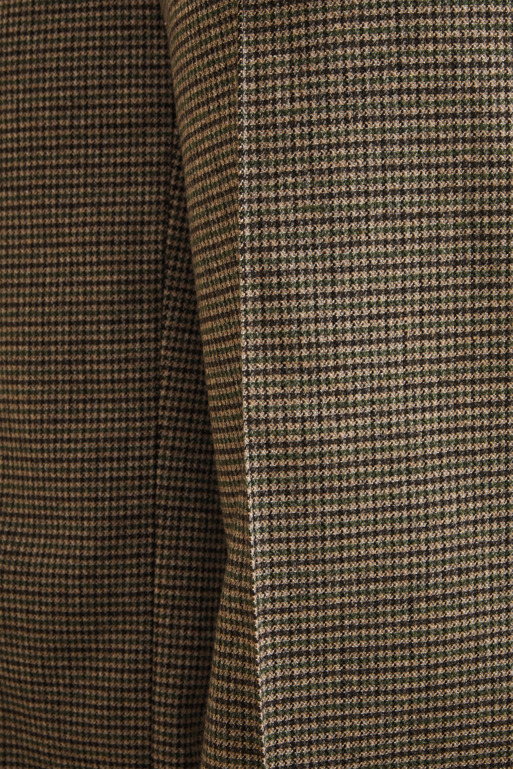 - La chaleur et la douceur d’une flanelle de laine recyclée, rehaussée d’un motif pied-de-puce.