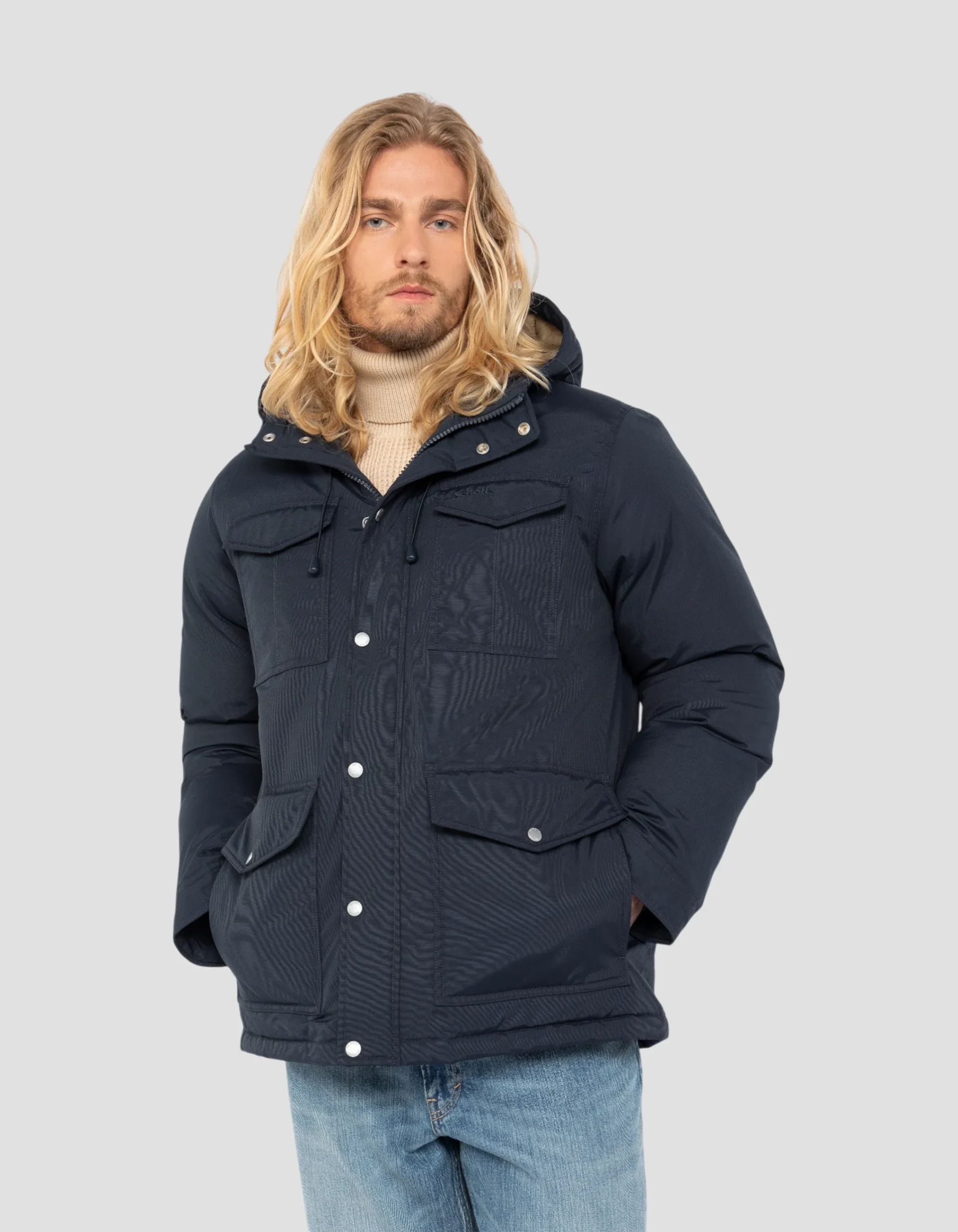 - 2 poches poitrine à rabat pressionné, 2 poches basses à rabat pressionné et 2 poches latérales