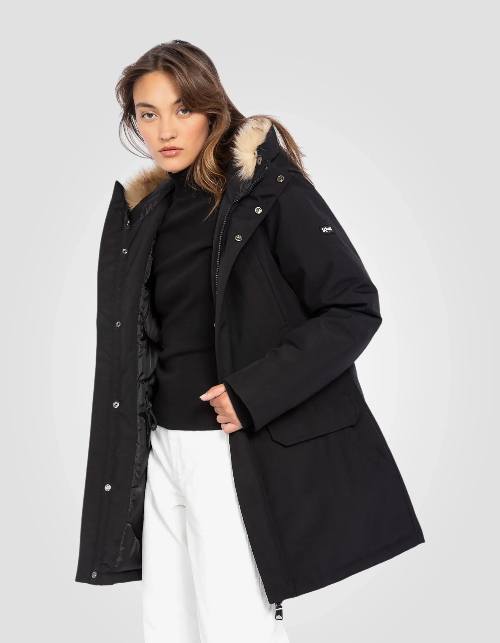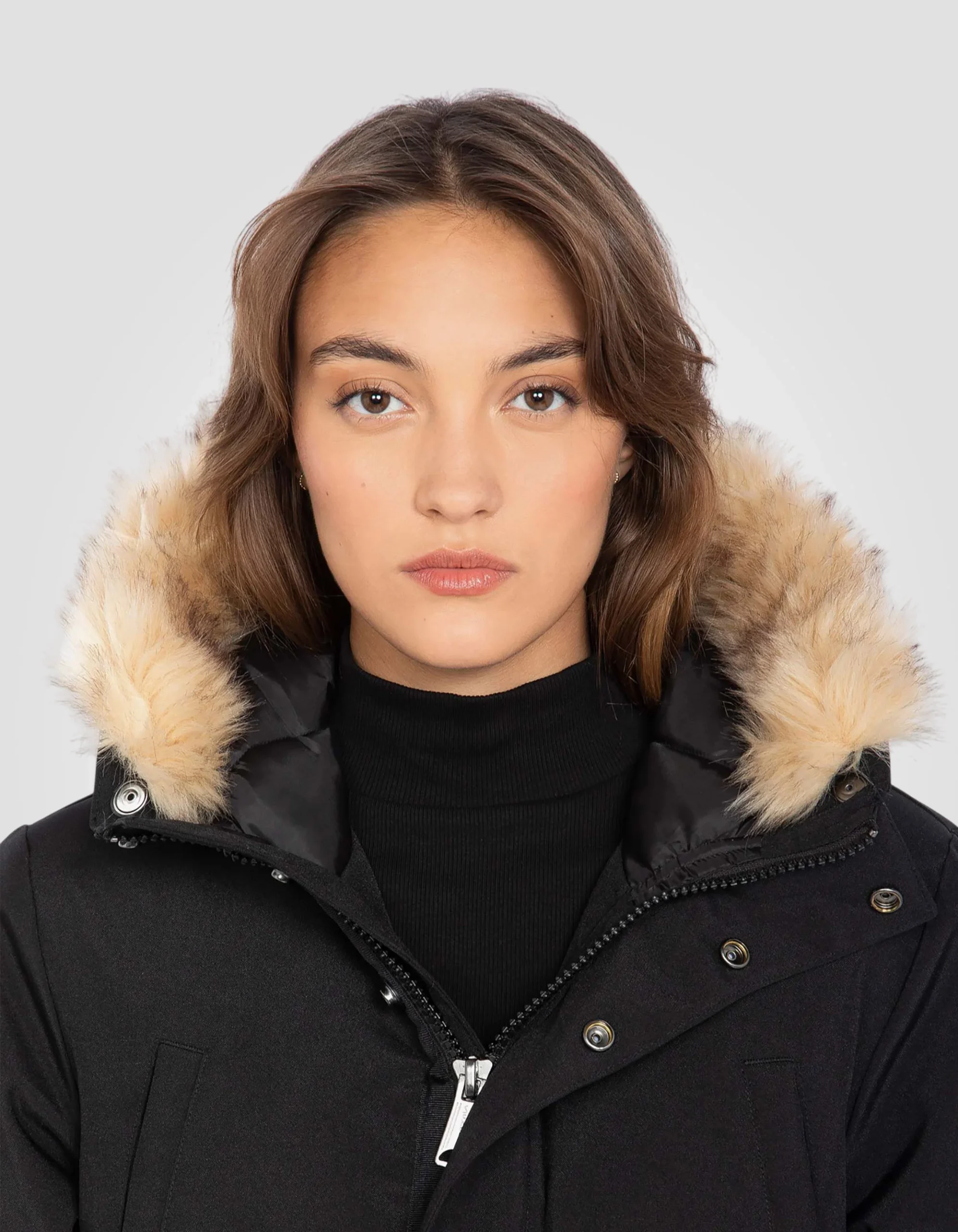 Cette parka à capuche à l’allure féminine vous séduira en vous apportant douceur et confort tout au long de l’hiver.