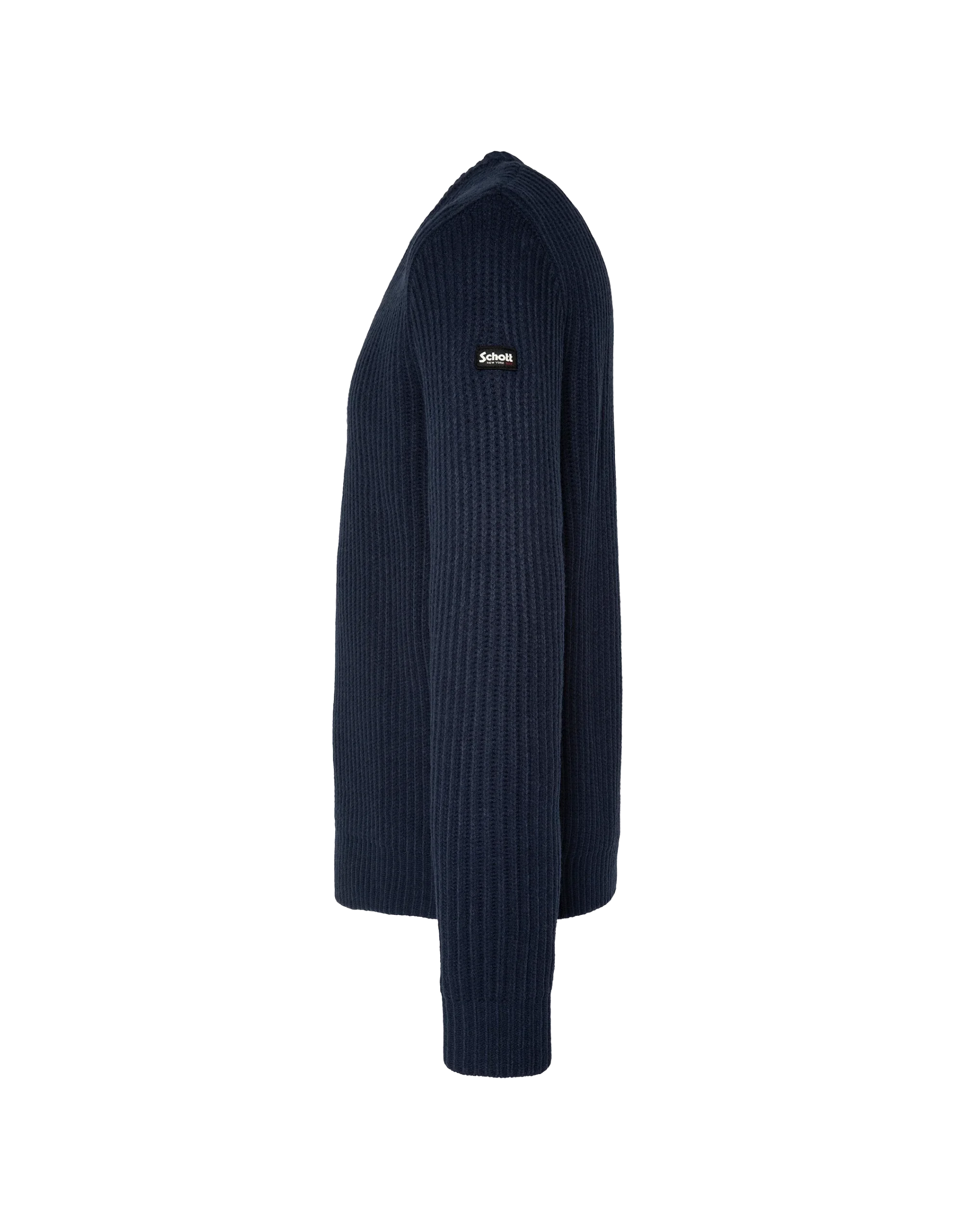 Soyez le premier à laisser votre avis sur “Pull col rond bleu marine, maille côtelé”