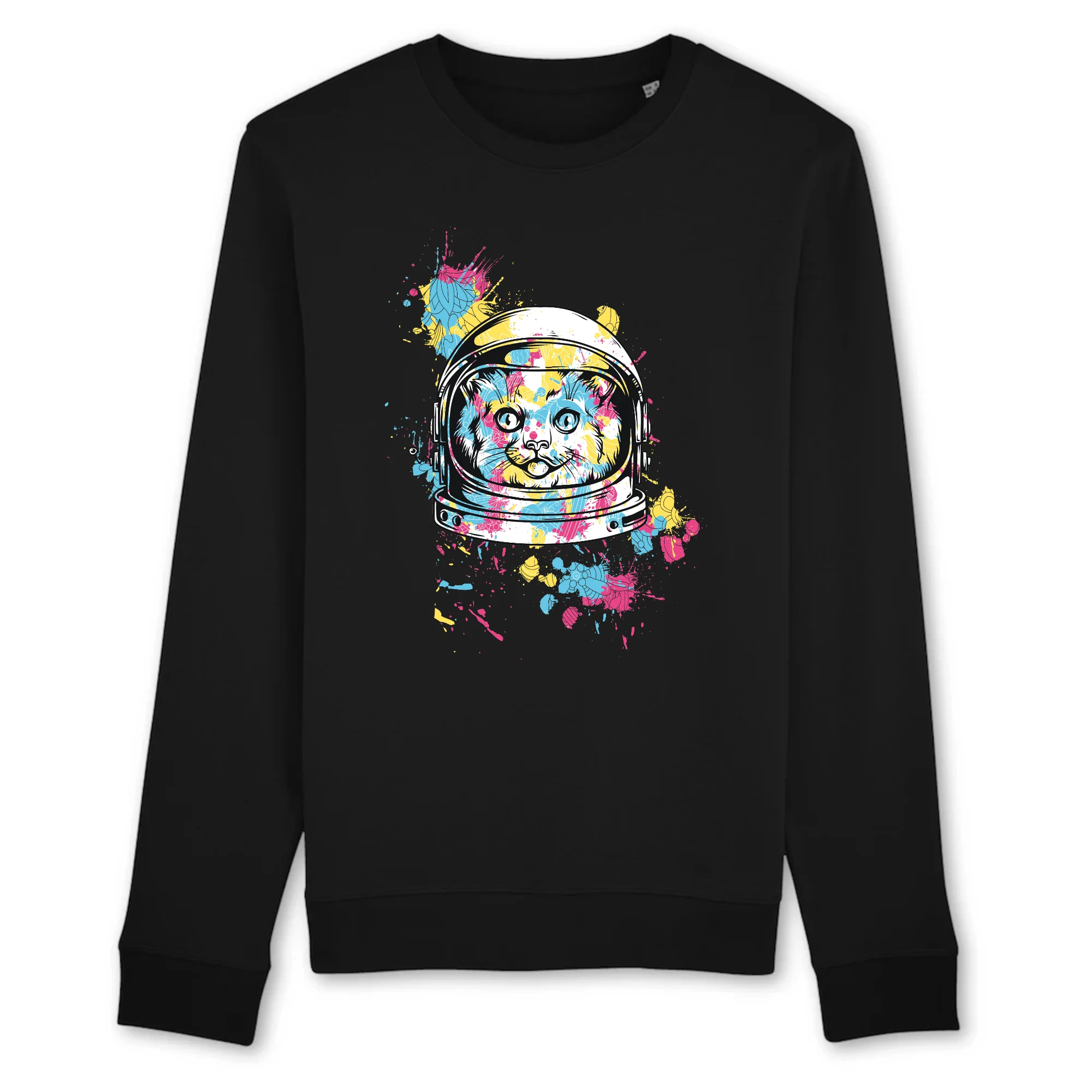 Porter le Pull Space Cat c’est déjà avoir un pied dans l’espace. Ce sweat original vous fera voyager dans un univers étoilé avec votre chat d’amour !