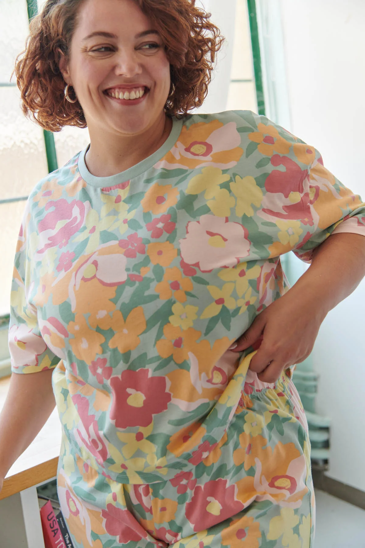 Cet ensemble, c’est un peu le Saint Graal du roupillon : un tee-shirt manches courtes oversize parfaitement coupé qui tombe nickel, assorti à un pantalon ni trop large, ni trop moulant, avec un élastique à la taille qui ne serre pas.