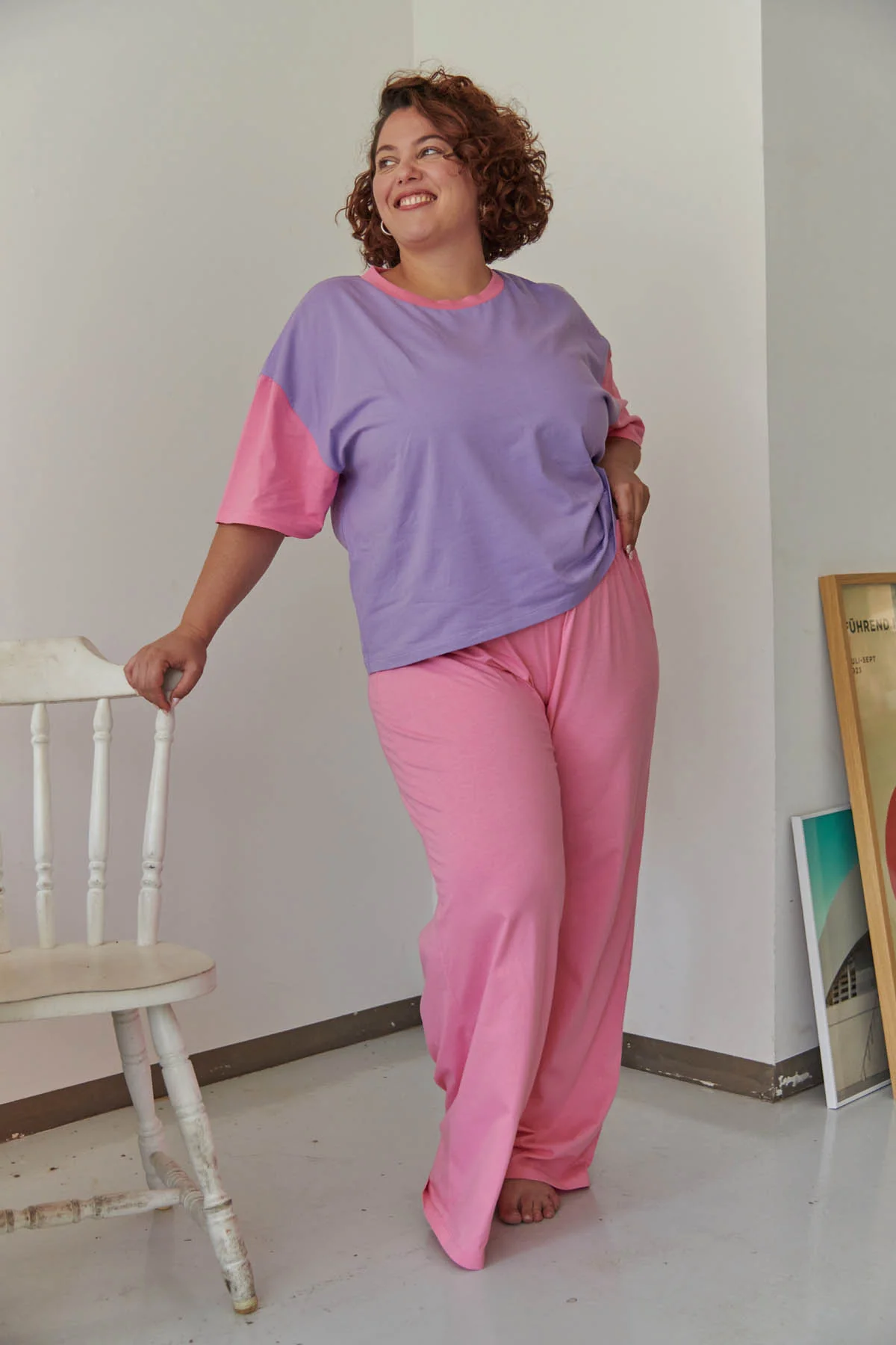 D’ailleurs, ce pyjama long rose et violet fait partie de notre collection Flashback, une ode aux années 80 et à leur liberté stylée. On a ressuscité cette énergie dans des pièces modernes, hyper confortables, mais toujours avec ce petit twist rétro.