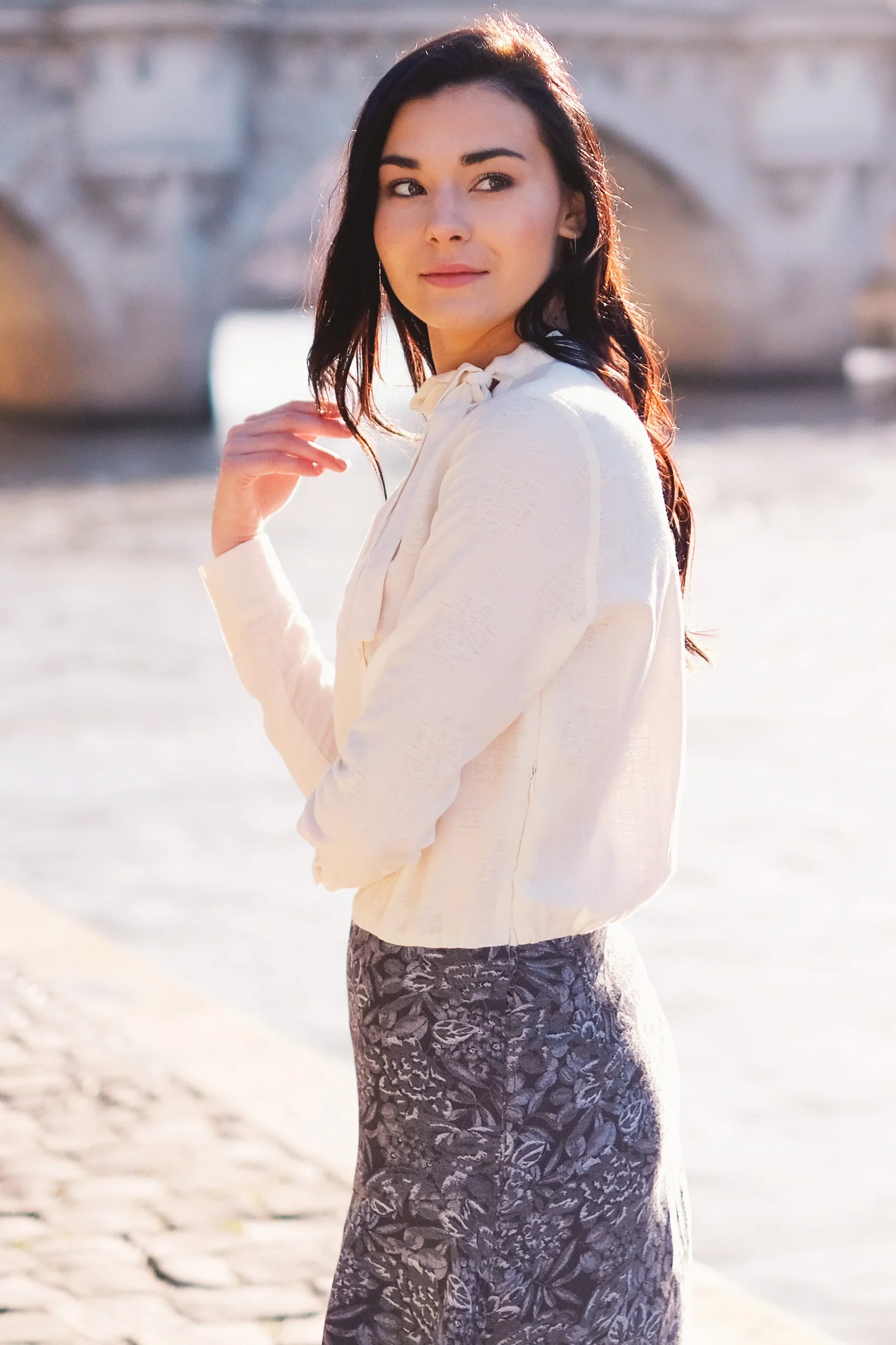 Pour une allure chic et nonchalante, cette robe Svetlana K allie avec audace deux matières en coton bio. Le haut en voile aérien au motif subtil se marie avec le bas ajusté en jacquard fleuri, résolument intemporel.
