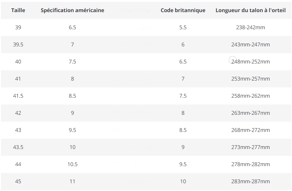 Ces tailles sont plus petites que la taille normale. Veuillez vous baser sur notre tableau des tailles (cm) et votre longueur de pied.