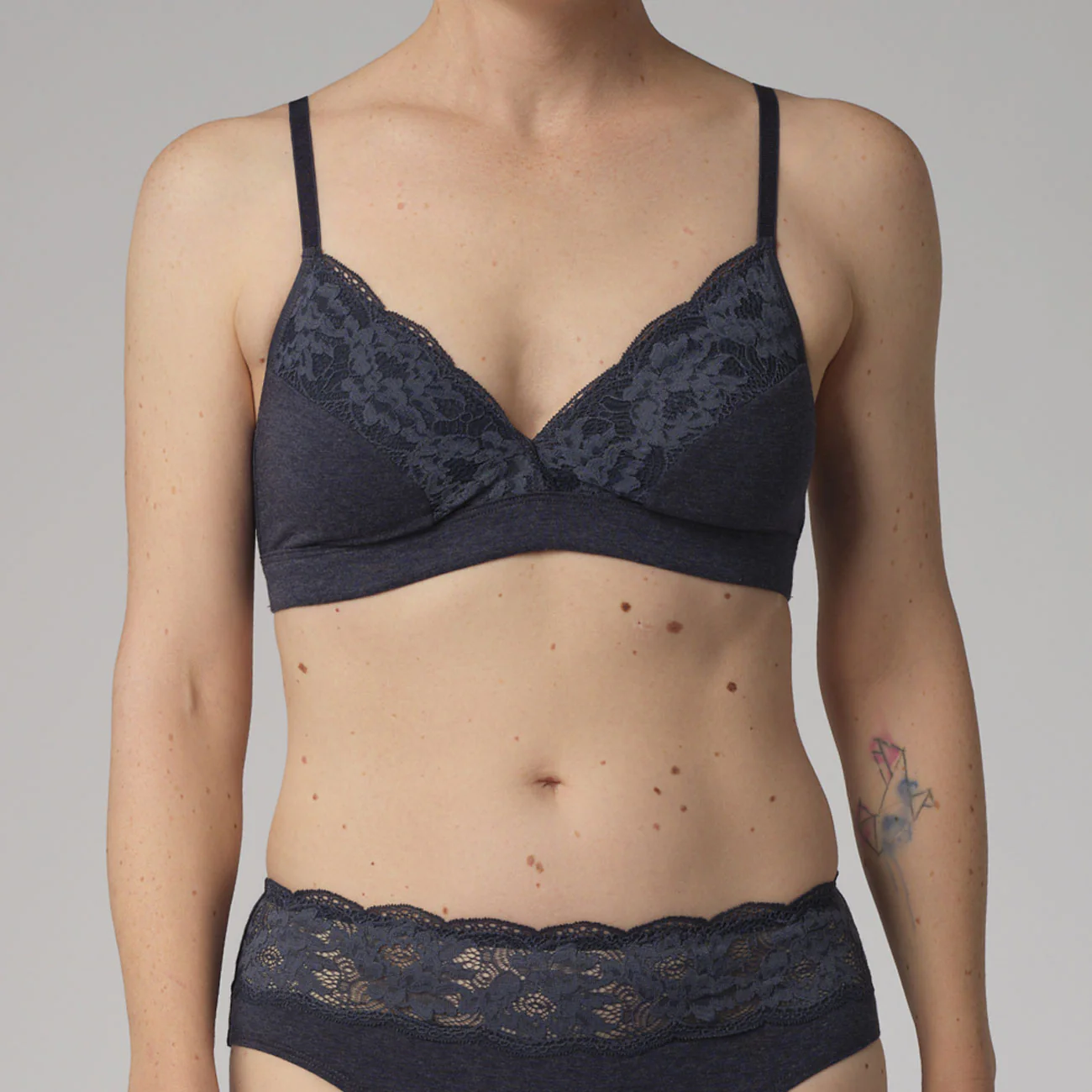 - Dentelle : 92% polyamide recyclé, 8% élasthanne