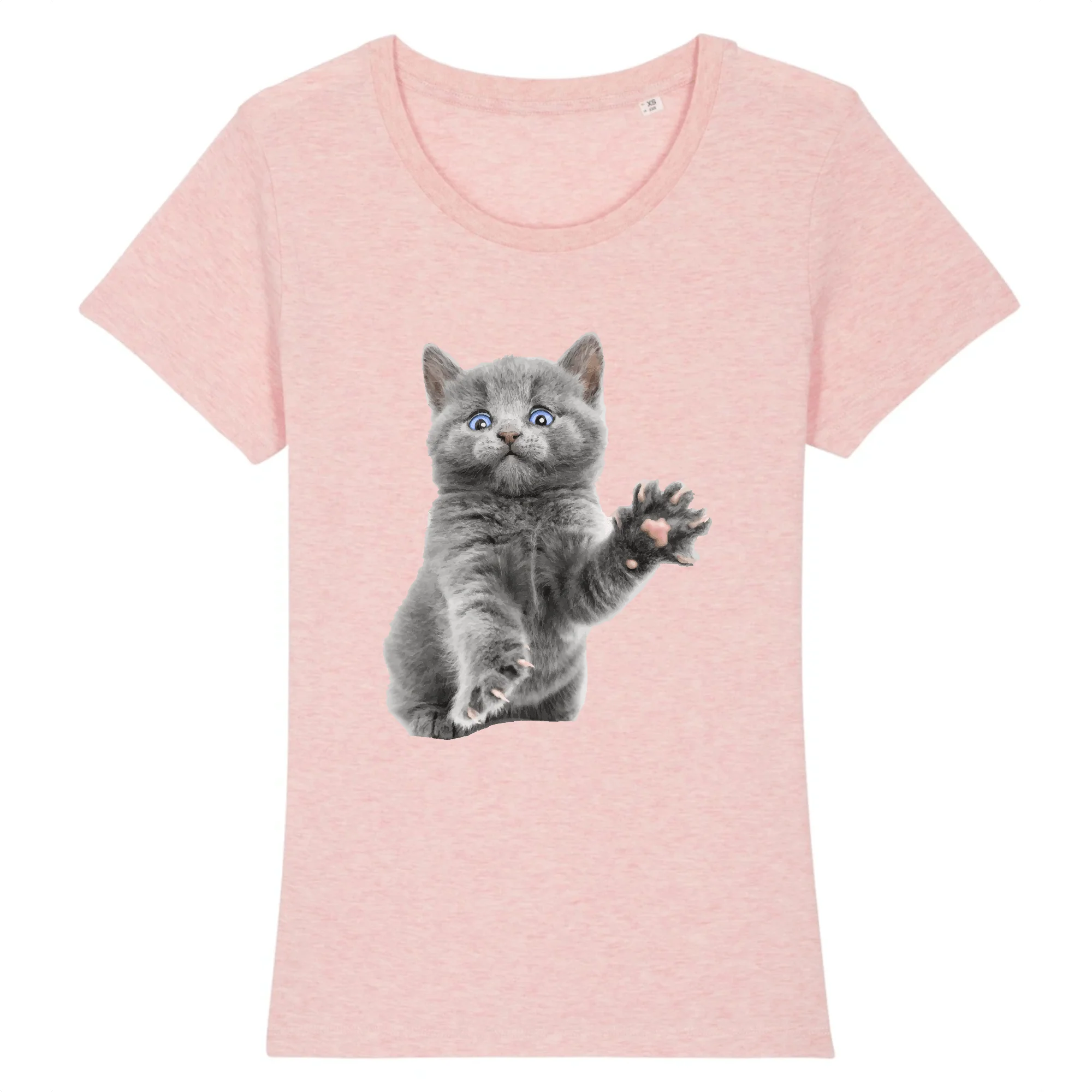 Attendrissant T-Shirt Chaton pour Femme, parfait pour toutes les amoureuses des Chats. Disponible dans 7 coloris 100% Coton bio, Impression française.