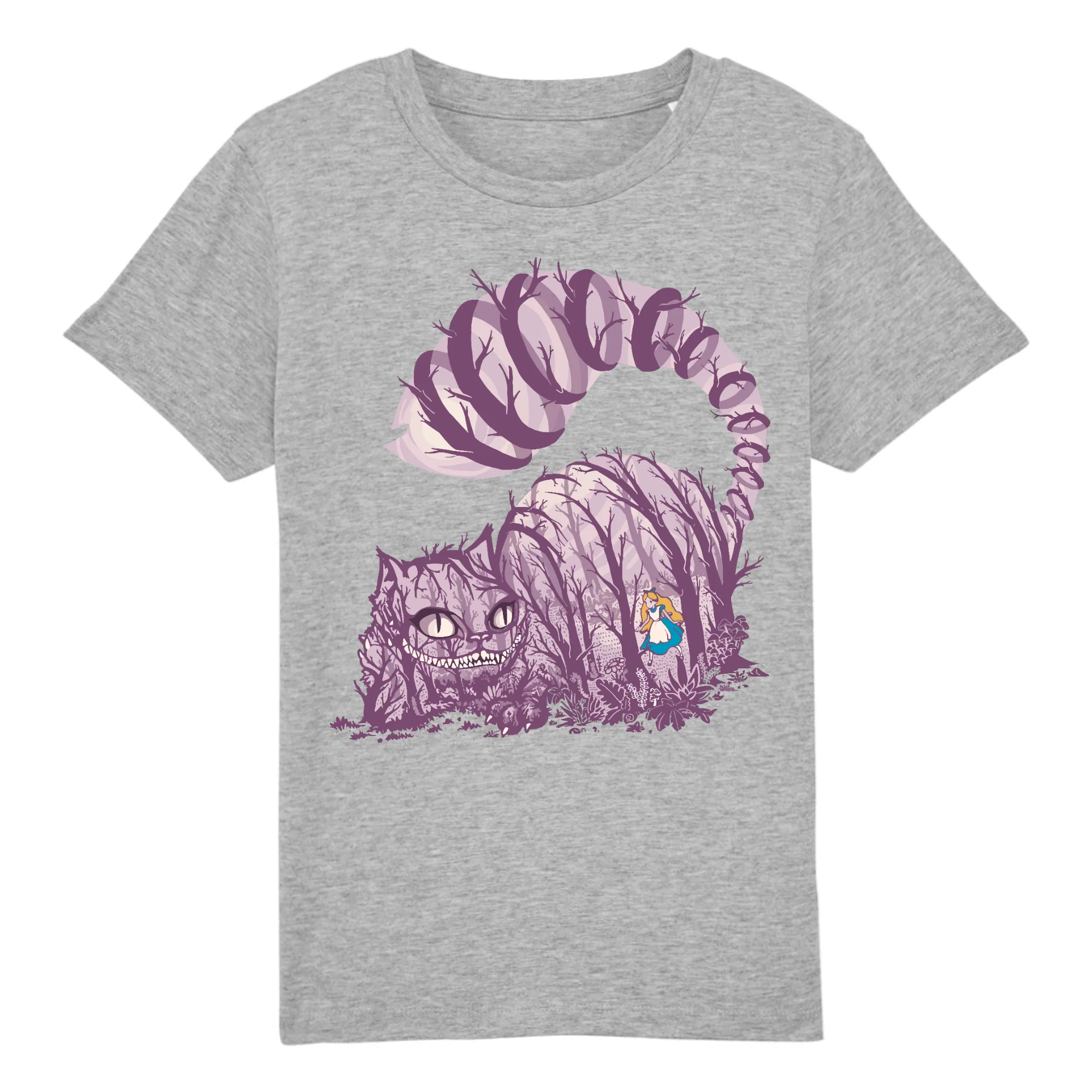 Avec ce T-Shirt, faites découvrir à votre Enfant la fabuleuse histoire d’Alice aux pays des merveilles et du célèbre et vraiment fou, Chat du Cheshire.
