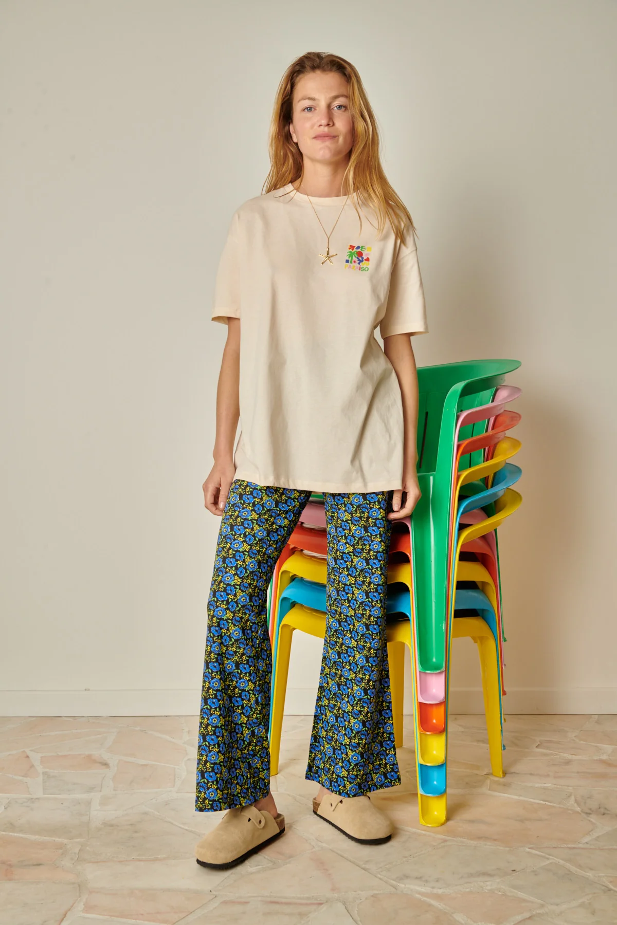 Le t-shirt qu’on voulait toutes : un poil oversize, un poil street, 100% coton bio tout doux et respirant, et avec un visuel dans le dos qui claque. 💚💛🩷