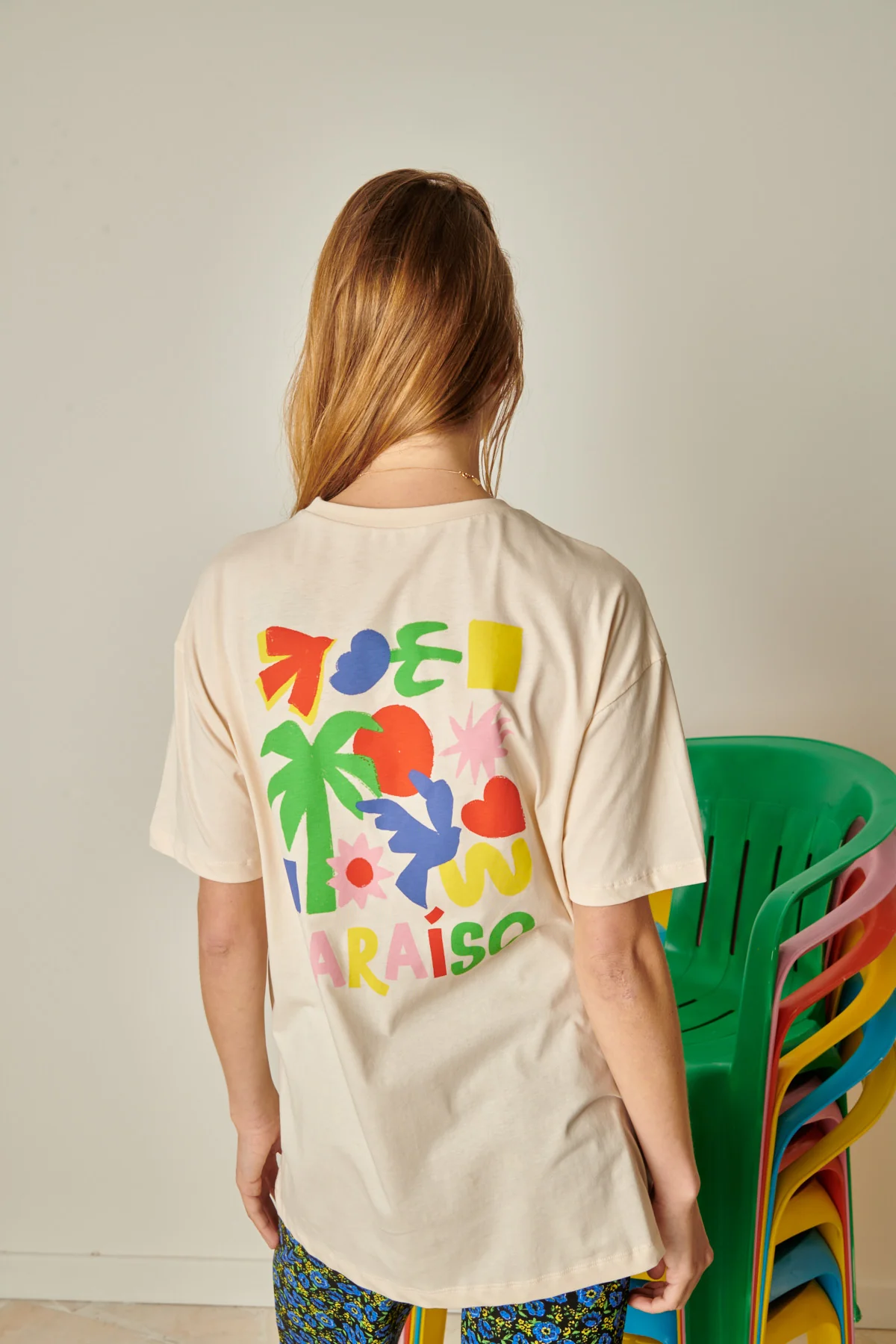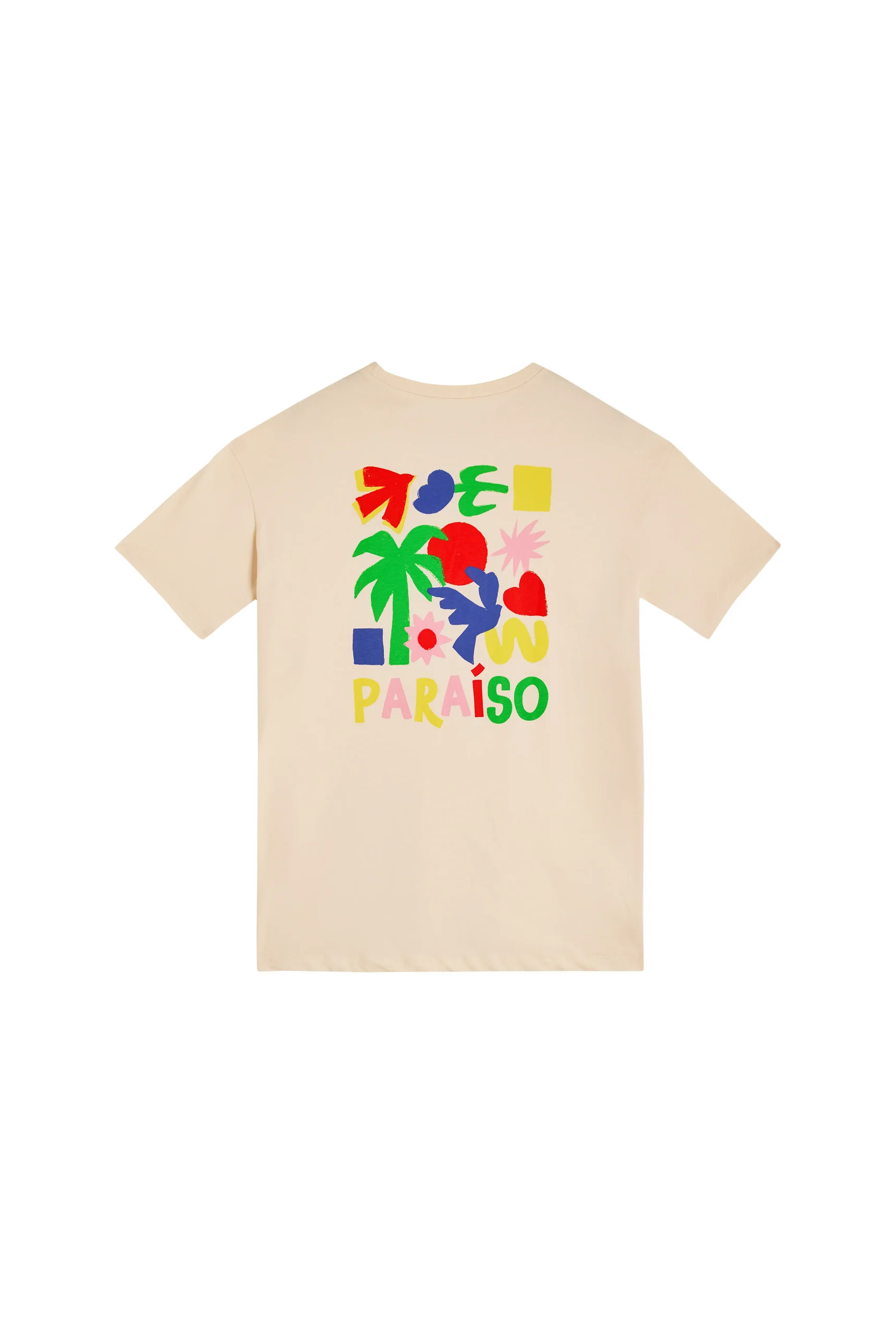 Ce t-shirt porte le logo de notre collection Paraíso, et cette collection, c’est notre façon de vous dire que le style, ça peut être simple, joyeux et profondément libérateur. Ce t-shirt en coton bio ? C’est votre meilleur pote. Celui que vous attrapez le matin et qui vous met de bonne humeur toute la journée.