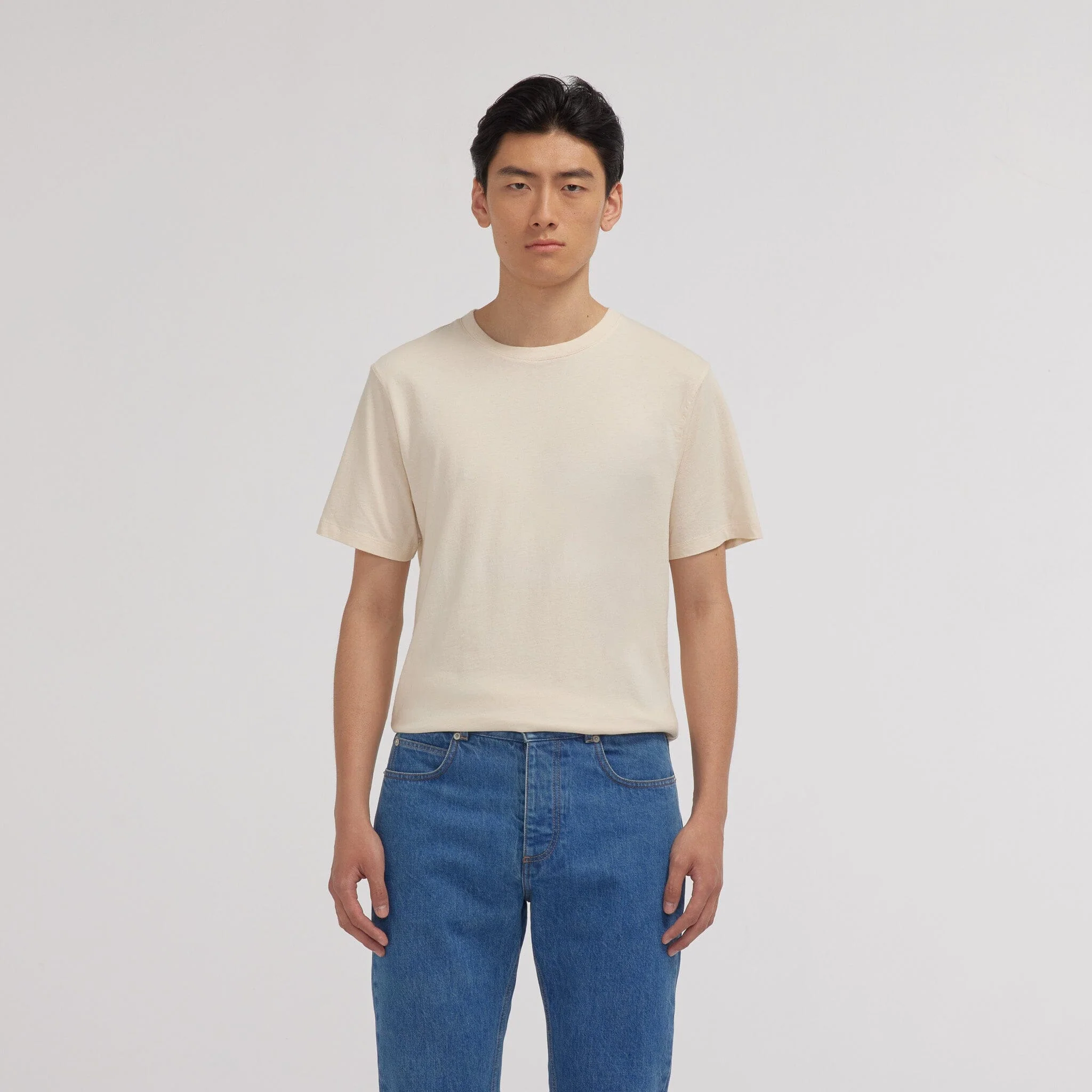 Un t-shirt en coton biologique certifié GOTS confectionné au Portugal, aux lignes épurées et au col rond classique, confortable et durable. Il est décliné en 4 couleurs, bleu marine, écru, blanc et gris chiné, qu’on portera volontiers tous les jours.
