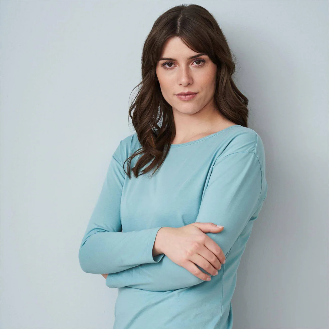 Ce T-shirt à manches longues est confectionné en coton Pima biologique, une matière exceptionnellement fine et souple. Sa coupe légèrement cintrée et ses fentes latérales proéminentes lui confèrent une élégance sobre et moderne, idéale pour toutes les occasions, que ce soit au travail ou pendant vos loisirs.
