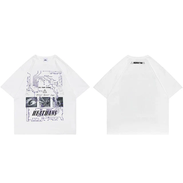 Pour laisser sa personnalité parler, ce t-shirt a été fabriqué avec le plus de simplicité. Sa coupe droite et classique en font un vêtement facile et agréable à porter. Ses manches larges, qui tombent sur le coude, offrent un grand confort et une grande liberté de mouvement. Avec son col rond au ras du cou, ce haut est une pièce intemporelle. Hommes et femmes le porteront très bien. Pour donner le côté punch, une grande impression avec une illustration futuristique trône sur le devant du t-shirt.
