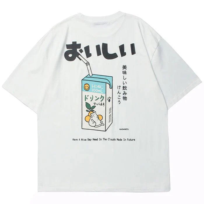 Le T-Shirt streetwear « Sai » est un vêtement en mode streetwear qui connaît une grande popularité depuis un bon moment. Avec ce type d’habillement, il ne fait aucun doute que tu seras plus que jamais en tendance actuelle. Il s’agit d’un produit dont la face arrière comporte une impression d’une image de jus de fruits et des inscriptions. Mais, sa face avant comporte ‘l’impression d’un petit dessin juste vers l’épaule gauche et laissant ainsi un grand vide inexploité. Cela peut donc te servir pour une personnalisation. Il en existe aussi bien en taille XL, M, L et S de quoi permettre à tout le monde d’y trouver son compte. C’est d’ailleurs dans cet objectif que les concepteurs l’ont réalisé en plusieurs couleurs dont le blanc et l’orange. Le porter est le meilleur moyen de s’offrir de l’élégance lors de tes prochaines sorties, qu’elles soient en journée ou en soirée.