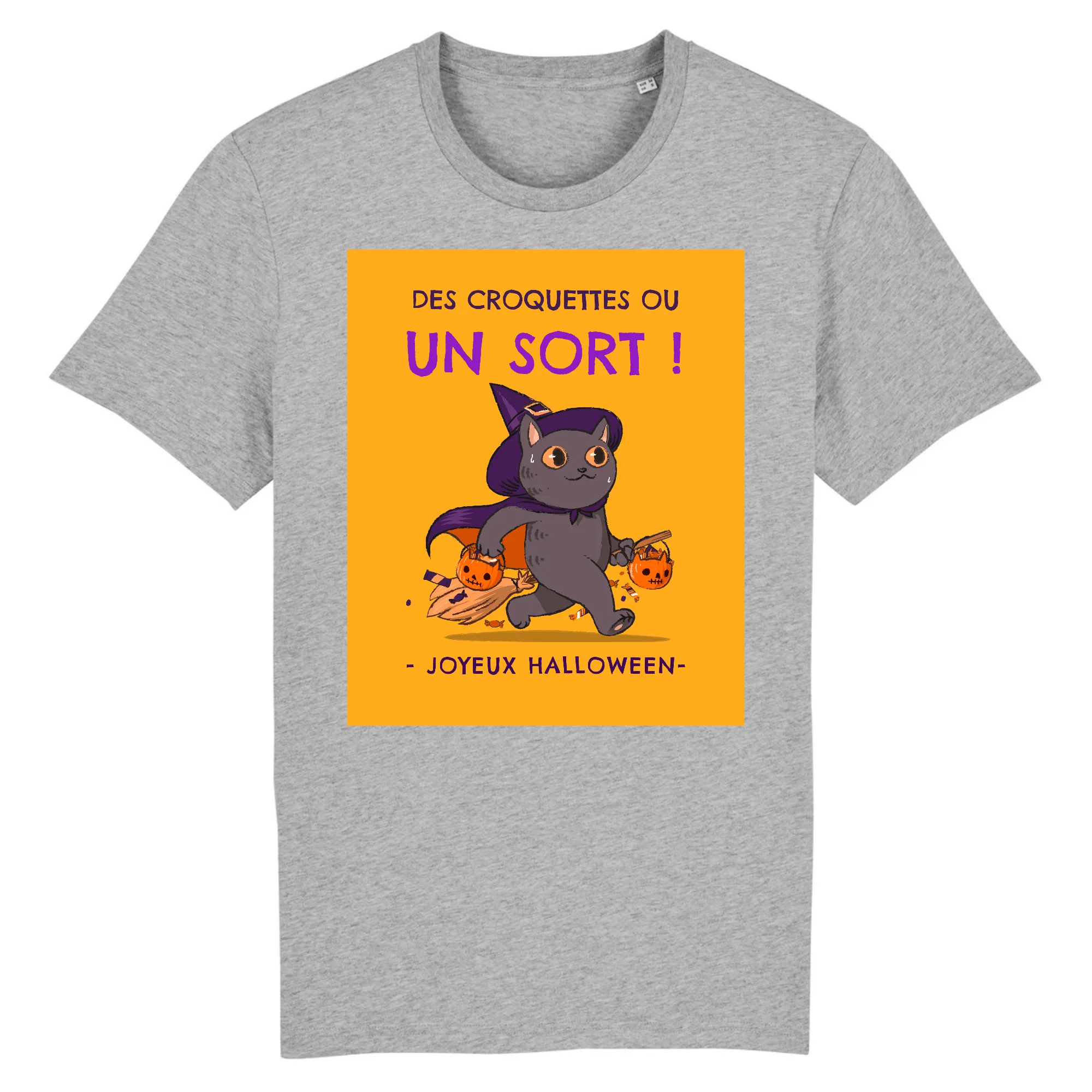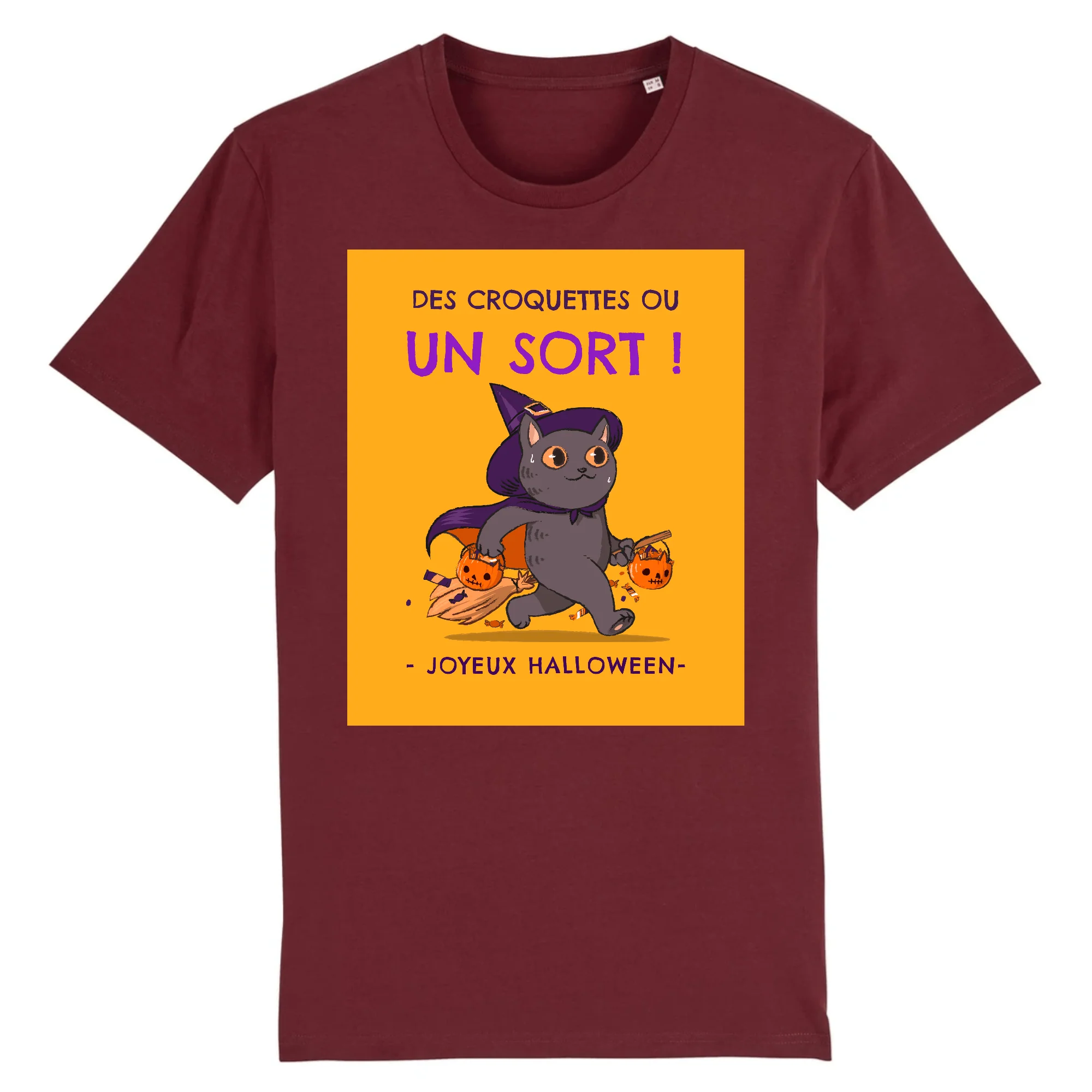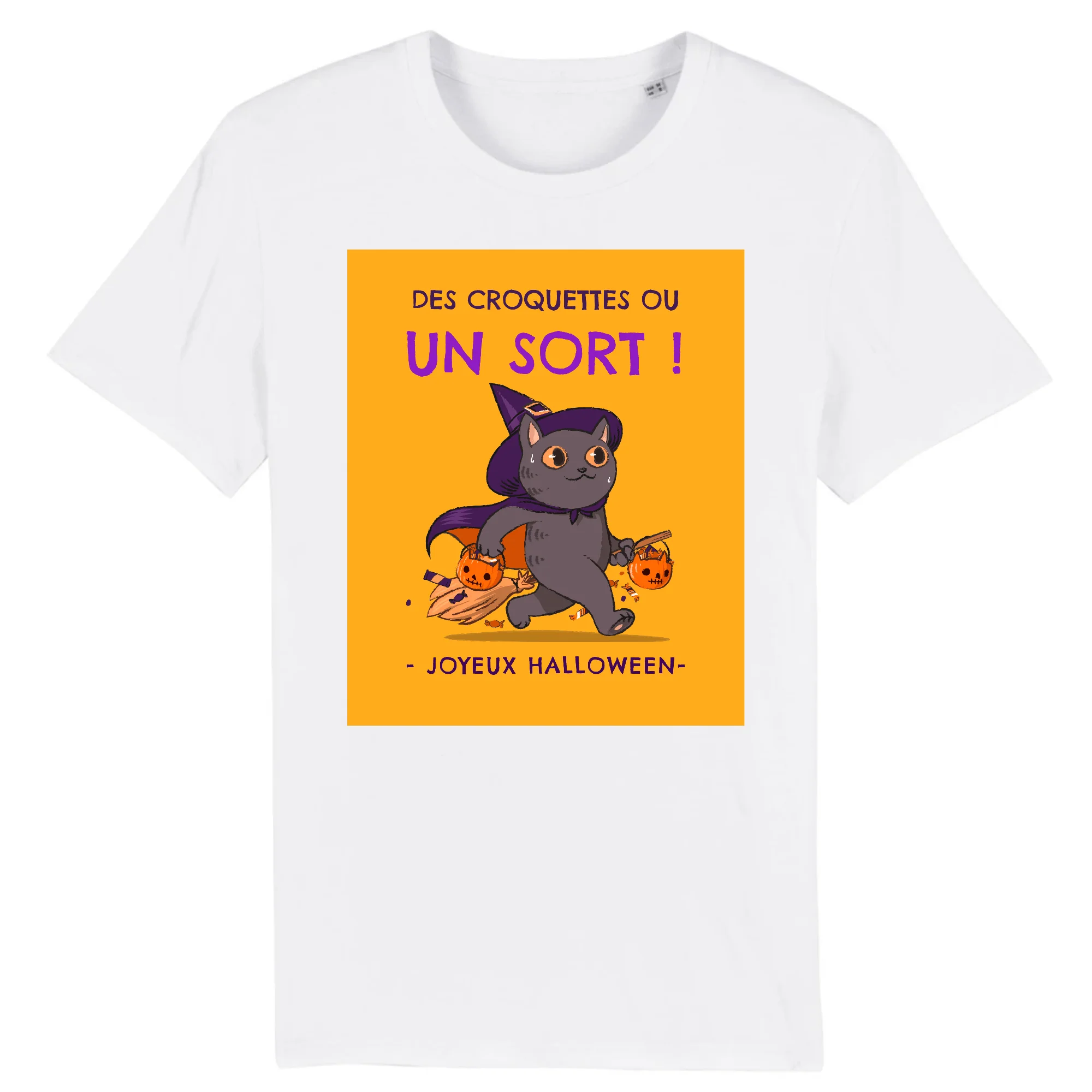 Si vous aimez les chats et que vous voulez fêter Halloween de façon originale, portez le Tee-Shirt Chat Joyeux Halloween pour vider une jolie citrouille.
