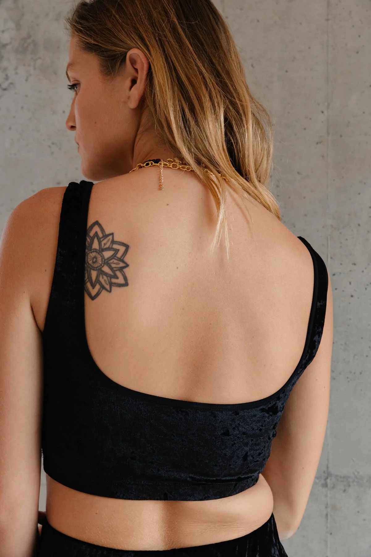 D’ailleurs, ce petit top en velours noir marbré fait partie de notre collection Flashback, une ode aux années 80 et à leur liberté stylée. On a ressuscité cette énergie dans des pièces modernes, hyper confortables, mais toujours avec ce petit twist rétro.