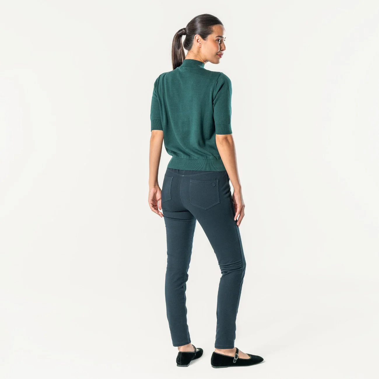 - Poches pratiques : Deux poches à l’arrière pour un véritable look de pantalon, avec des poches trompe-l’œil sur le devant.
