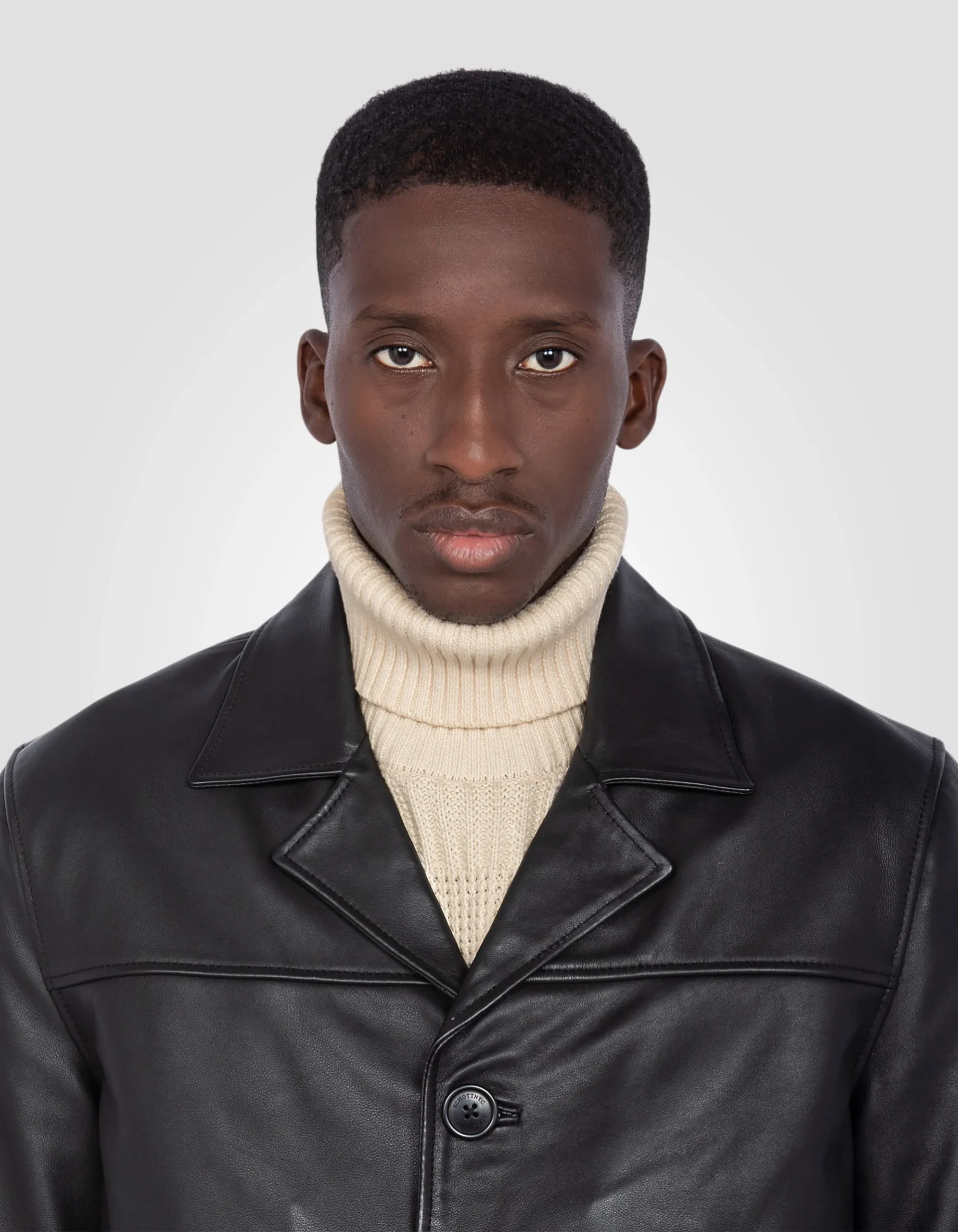 Cette veste en cuir épais à la coupe droite vous apporte un style sobre et élégant.