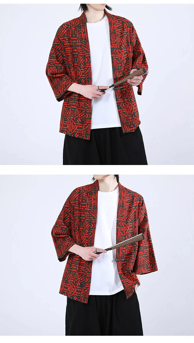 Ce kimono pour homme allie tradition et modernité avec son design audacieux rouge et noir. Confectionné en lin, il offre une sensation de légèreté et un confort optimal. Idéal pour compléter un look streetwear raffiné ou pour adopter une allure inspirée de la culture japonaise authentique et apaisée.