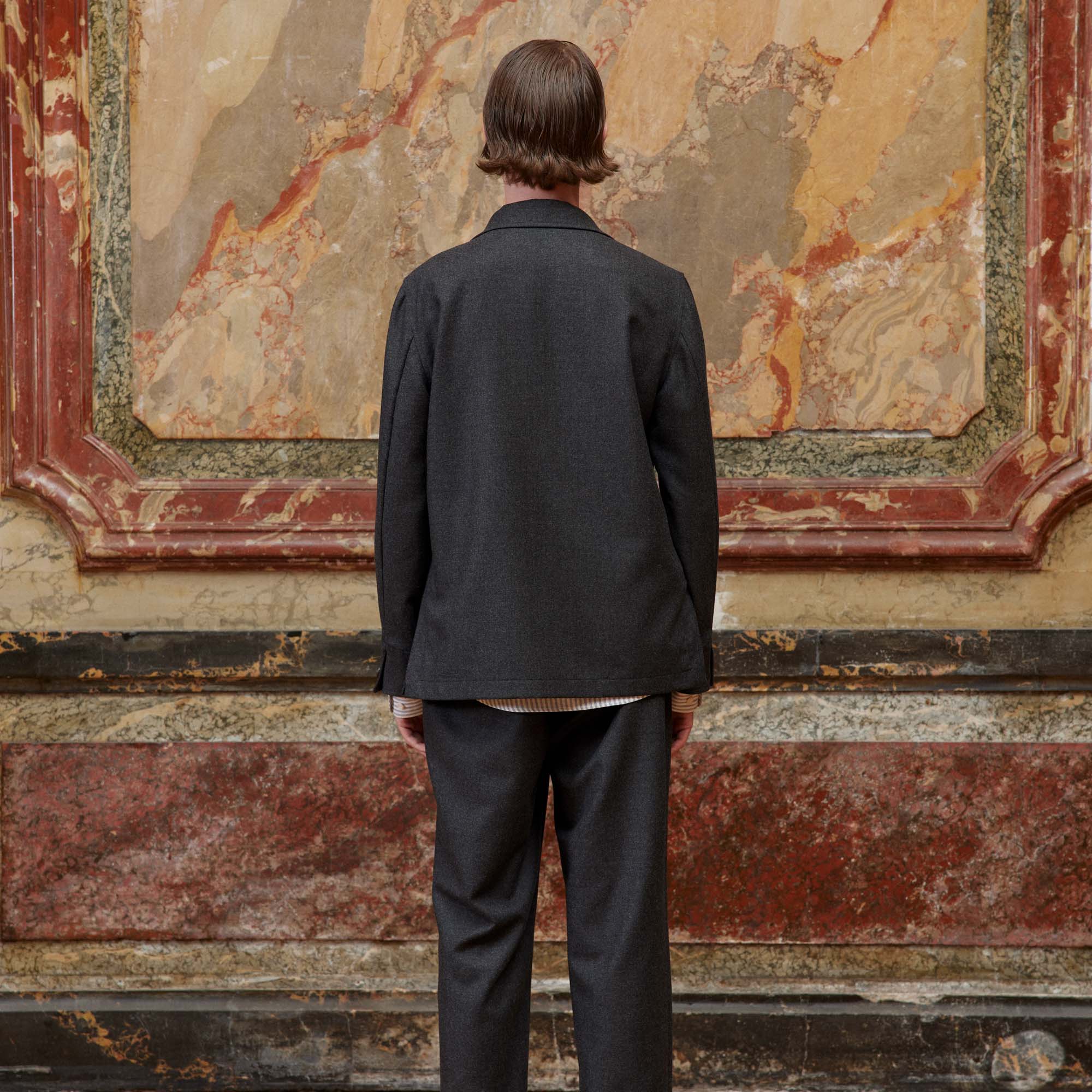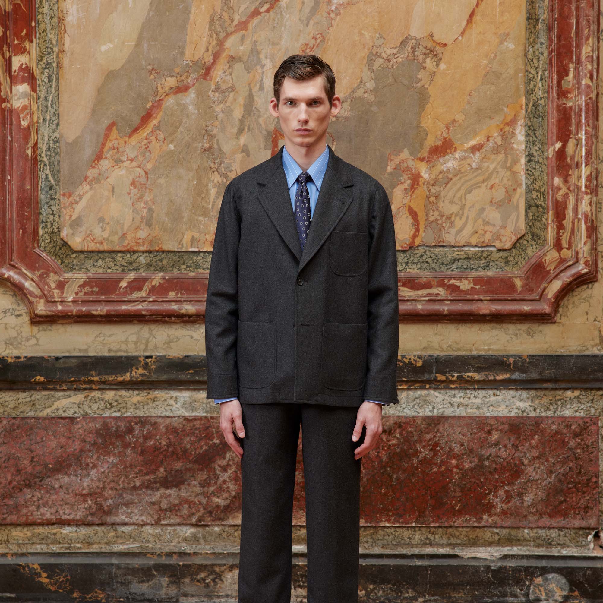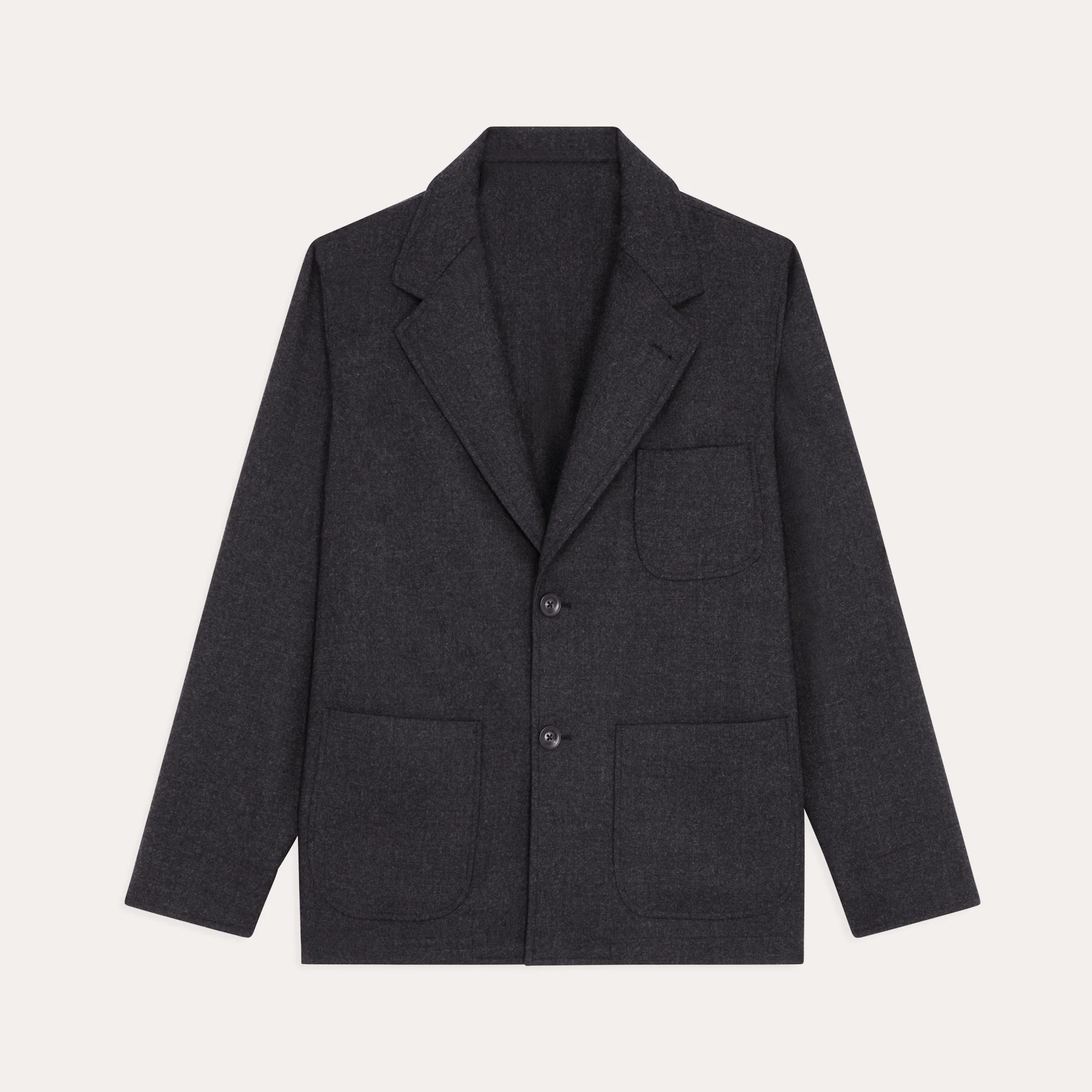 Nous avons retravaillé le col de notre veste déstructurée dans un esprit tailleur. Confectionnée dans une belle flanelle de laine de chez Marzotto, elle est souple et très agréable à porter. Elle peut se porter avec le pantalon associé à taille élastiquée pour un ensemble moderne et élégant.